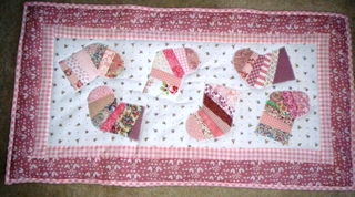 Voila, ein weihnachtlicher Läufer ganz ohne Weihnachtsstoffe in der Lieblingsfarbe rosa, in der die ganze Wohnung dekoriert ist.