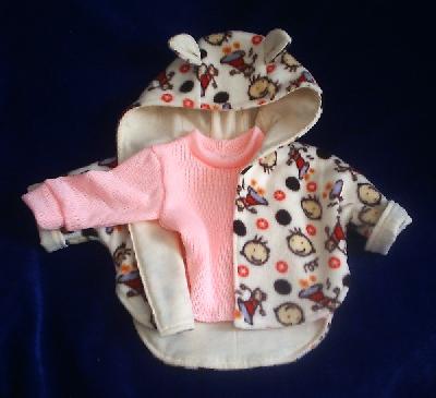 Oh superschön! Ich find das immer so niedlich, an die Jackenkapuze Öhrchen dranzumachen ... meine Kleine hatte so eine Jacke auch, aber leider nicht selbst gemacht. AUch das Kissen zur Decke ist schön, ich hab meiner Tochter auch etliche Kissenhüllen gemacht, die nimmt sie dann zum Kuscheln tagsüber, wenn sie Bilderbücher liest oder mit den Plüschis spielt.