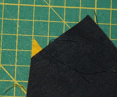 möchte noch anmerken, daß man (ähm Frau), wenn die Teile wie gezeigt aufeinander liegen anfängt zu stecken, im Kreuzungspunkt dann überprüfen kann obs stimmt (beide Nähte müssen sich treffen) - damit nicht verrutscht, das nach dem durchstecken der Stecknadel, wie eine Kneifzange halten und dann knapp umpieken...
