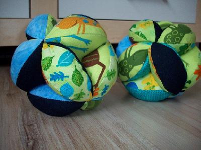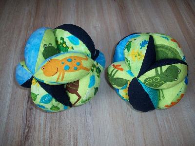 Die Greifbälle sehen super aus und besonders gefällt mir die Stoffkombination mit den Fröschen und dem dunklen Stoff