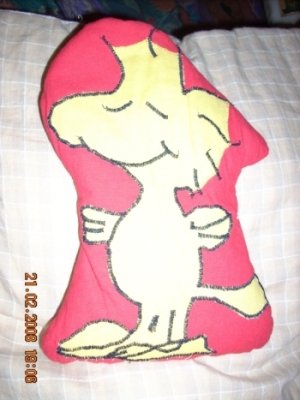 zeigen was meine Tochter für mich nähte als ich im KH lag, ein Dinkelkissen auf das sie den Woodstock applizierte, weil ich den coolen Vogel so gerne mag. Isse net toll meine Große??