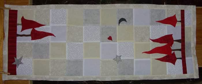 Ich hab den Winter. Tischläufer nach der Anleitung von sulky-international.de gednäht - o.k. mit Abwandlungen und das Top ist fertig und das erste Stück auch gequiltet...