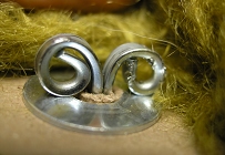 Also gut gehen solche kniffligen sachen mit "Schuster-Nadeln". Diese sind gebogen und in einer Packung sind verschieden lange und dicke Nadeln. Gibt es da, wo es auch andere Nadeln verkauft werden oder im Bastelladen. Als "Nähgarn" kann ich ungewachste, einfache Zahnseide empfehelen. Die ist absolut reißfest und schon durch ihre Bestimmung relativ "sabberfest" (z.B. bei Kleinkindern). ich habe selbst mit Zahnseide schon Perlen genäht und ähnliches und nur sehr gute Erfahrungen gemacht. _________________