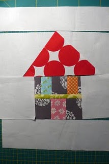 Vielen lieben Dank für Eure netten Kommentare. Ich habe nicht wirklich eine Anleitung zu den Wonky House und Tree-Blöckchen. Ich habe irgendwann einmal einen solchen Quilt im Netz gesehen, aber nie mehr wiedergefunden. Unter "Wonky House" findet man schon einiges, aber ich selbst (ich habe ja nur 4 der Quiltblöcke selbst genäht) habe es mir ganz einfach gemacht. Hier sind 2 Bilder von meinen Blöckchen: