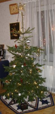 Das ist unser erster eigener Tannenbaum - da wir bisher immer bei der Familie gefeiert haben - und wir sind mächtig stolz darauf! Und ich muss bei aller Bescheidenheit feststellen, daa ich den WIRKLICH GUT AUSGESUCHT habe!!!
