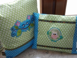hab auch mal wieder nach langer Zeit was genäht. Patenkind hat Kissen bestellt für die Puppe dann hab ich gleich eins für die "Mami" mitgemacht.