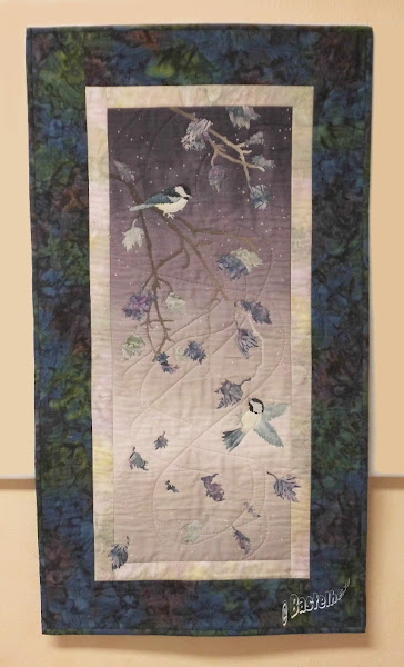Ich hab's geschafft - mein Wandbild (eine Applikationsarbeit von McKenna Ryan "Aurora Ridge - Feather Flurry") mit den beiden hübschen Meisen ist fertig. Ich bin richtig happy darüber, daß ich das in so kurzer Zeit (25..11.18 - 04.02.19) geschafft habe, zumal diese Art zu nähen absolutes Neuland für mich ist.